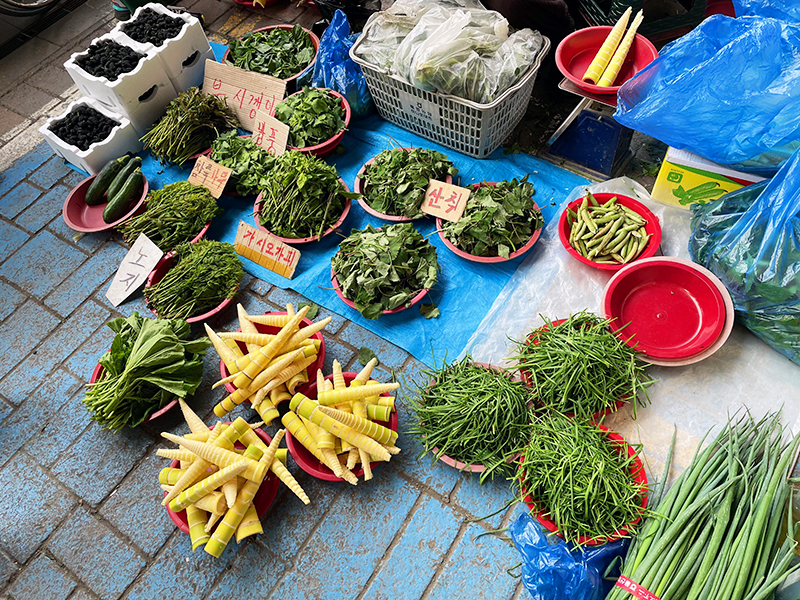 상인 분들이 직접 키우고 농사짓고 만드신 채소, 과일, 먹거리들이라