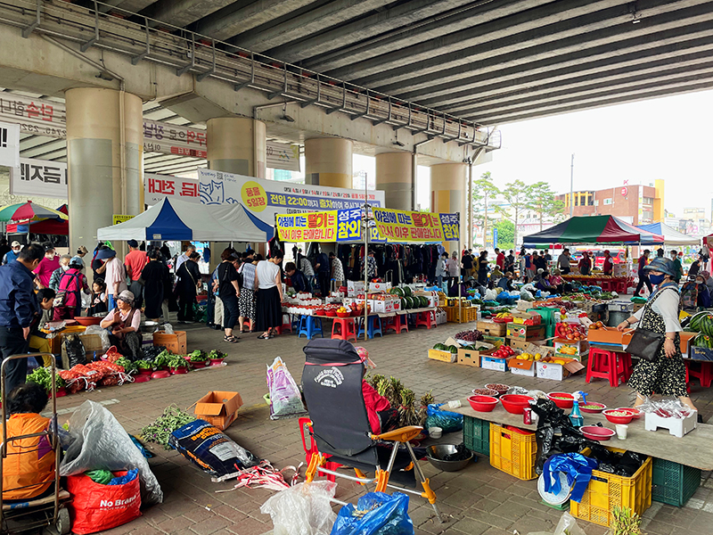 역 고가 아래에서 5일장이 진행 중이었는데,
