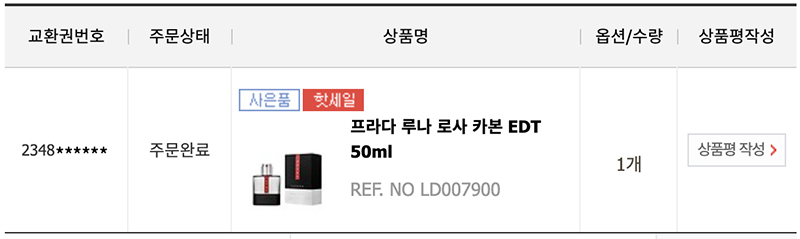 신라 아이파크 면세점에서 구입한, '프라다(PRADA) 루나 로사 카본 EDT(오 드 뚜왈렛) 50ml'