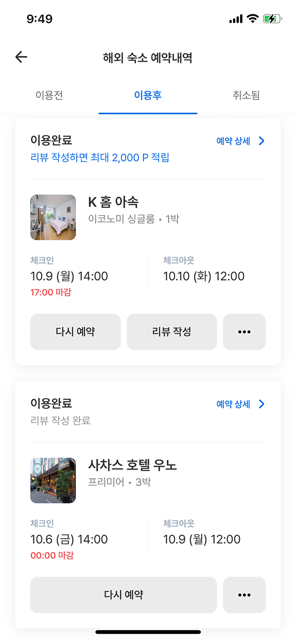 호텔 체크아웃 후, 바로 새로운 호텔로~