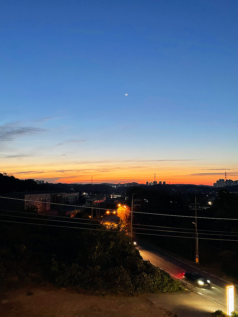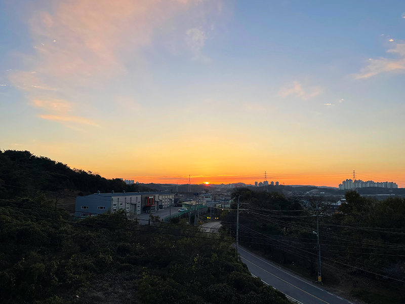 어느새 눈 떠 보니 창문 밖 일출이 한창이다.