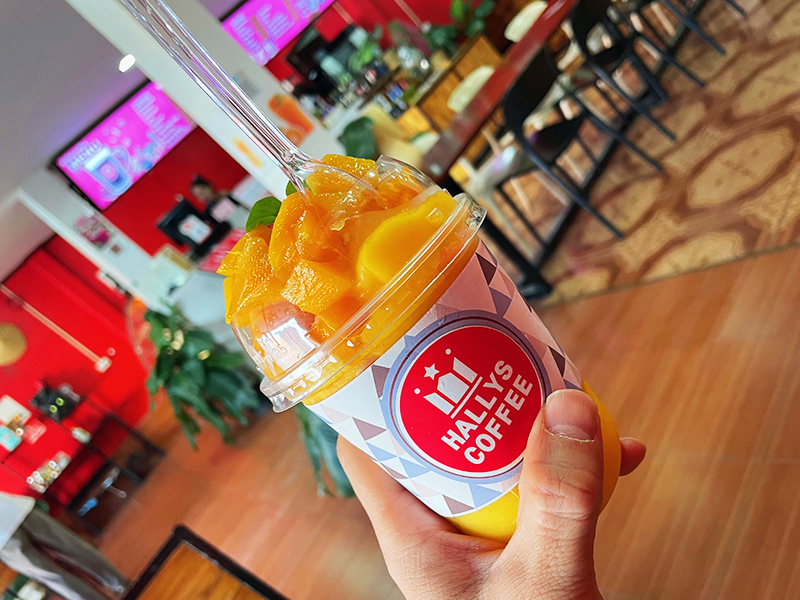 기다리는 동안 망고 스무디 하나 주문했는데,