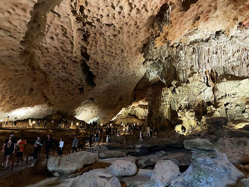 앞 선 루온 동굴이 섬과 하롱베이 경계에 있는 해수 동굴이었다면,
