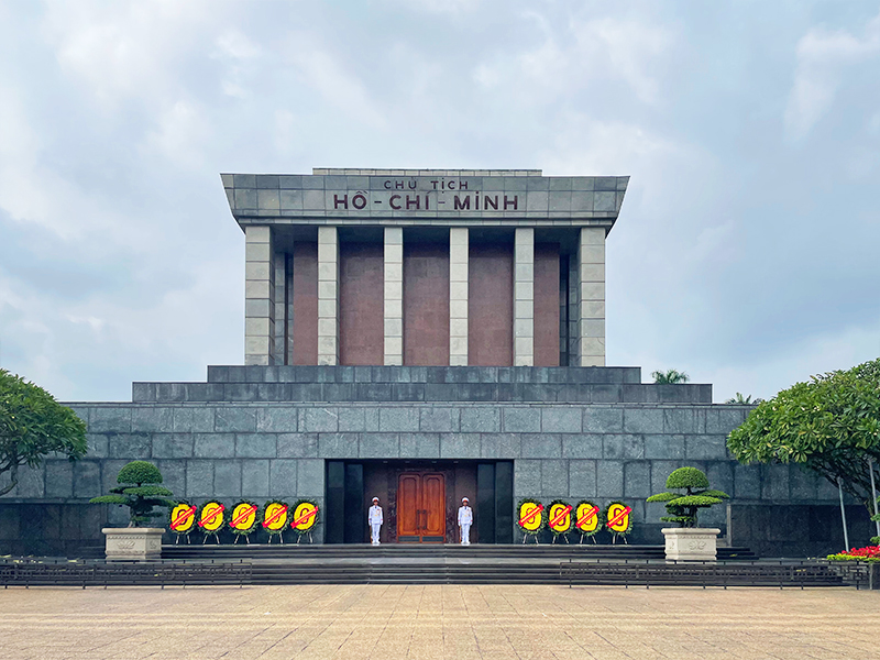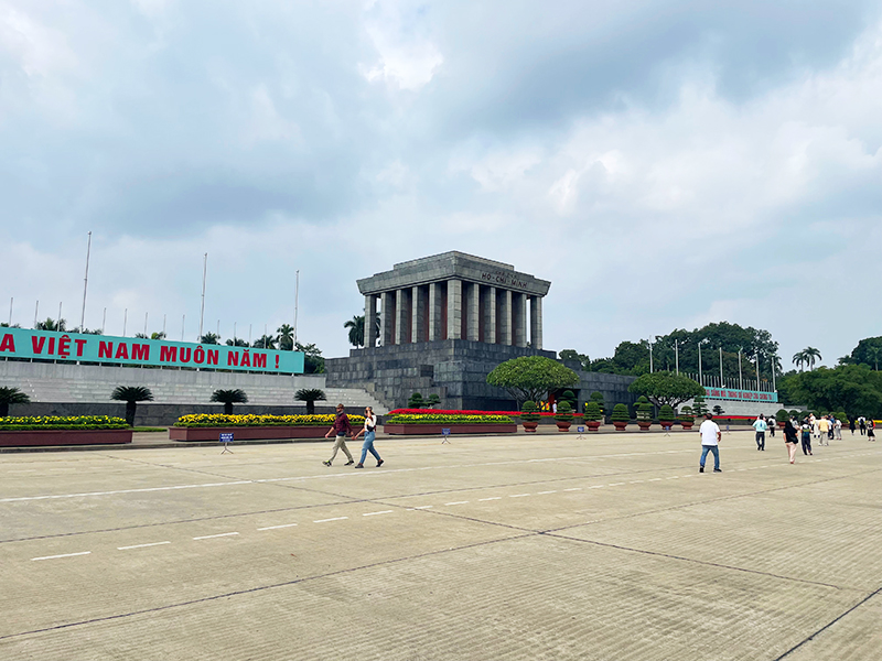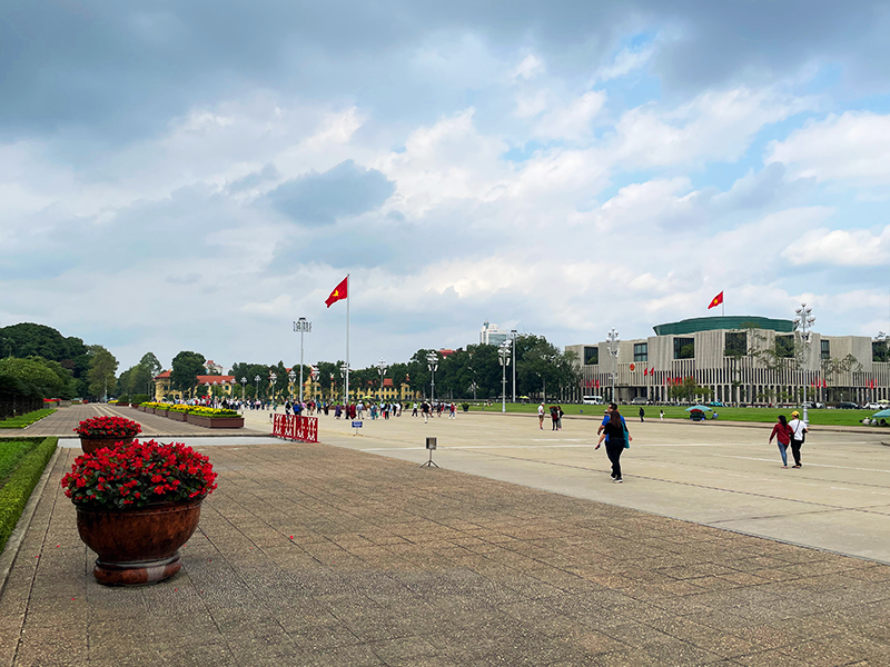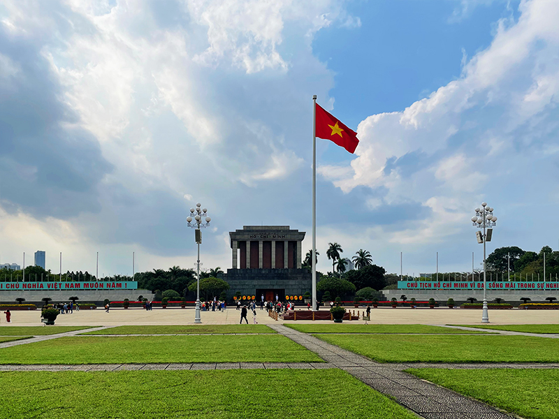 호찌민 묘소와 대형 베트남 국기가 시선을 사로잡는다.