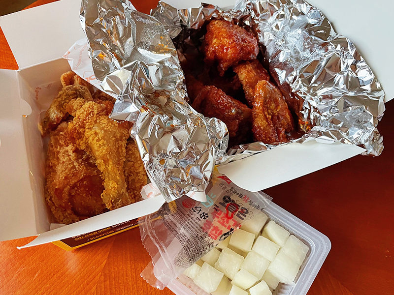 후라이드 반, 양념 반 치킨에 맥주 한 잔 하며 쉬고 있으니,