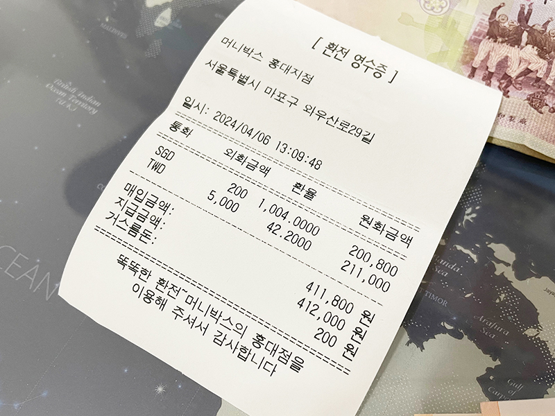 다음 주 싱가포르 여행에서 사용할 싱가포르 달러(SGD)와