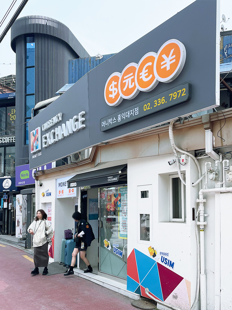 복잡한 거리를 어렵게 뚫고 지나서 머니박스 홍대점 환전소에 도착했다.