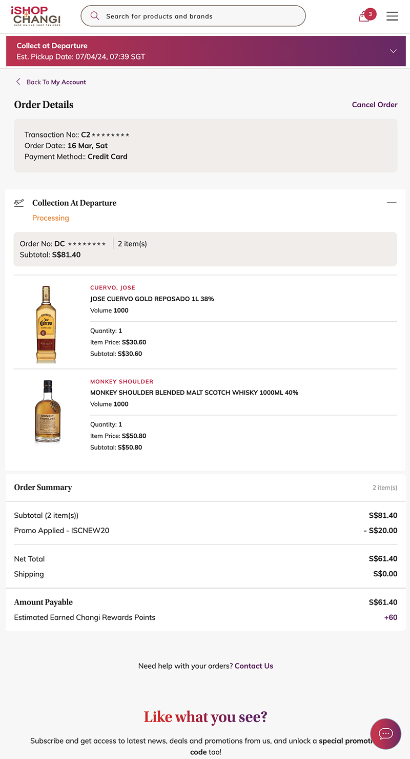 발급받자마자 테스트 겸 싱가포르 면세점인 창이공항 온라인 면세점에 가입해서