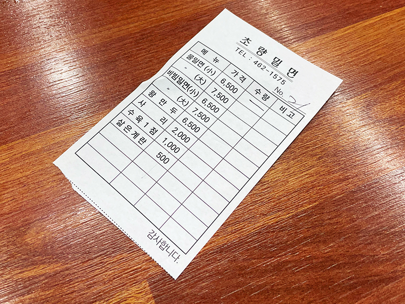 안내해 주는 자리에 앉아 물밀면 작은 사이즈로 하나 주문!