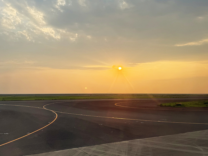 해질 무렵 출발하는 비행기 좌석에 앉아 있으니