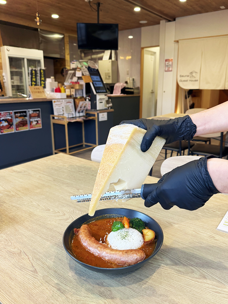 잠시 후 주문한 수프카레가 나왔는데, 치즈 토핑을 추가해서 요렇게 즉석에서 치즈도 갈아주심!