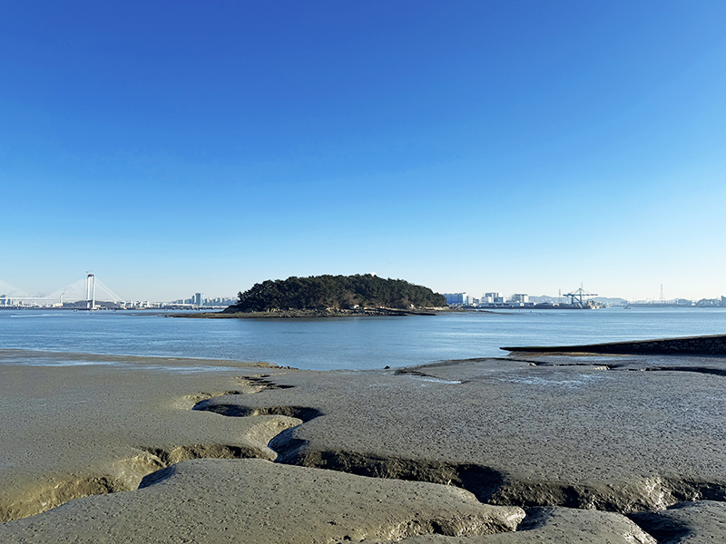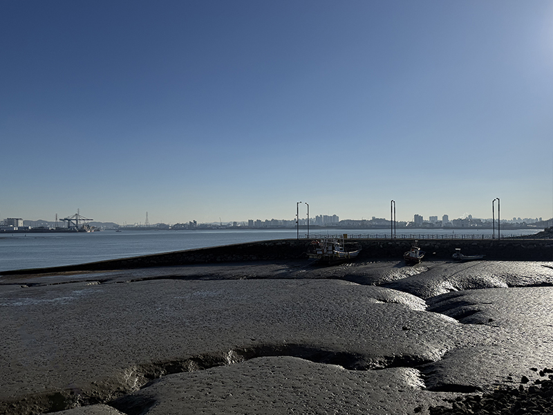 아침 시간대라 물이 빠져서 갯벌을 드러낸 영종도 바다 풍경!