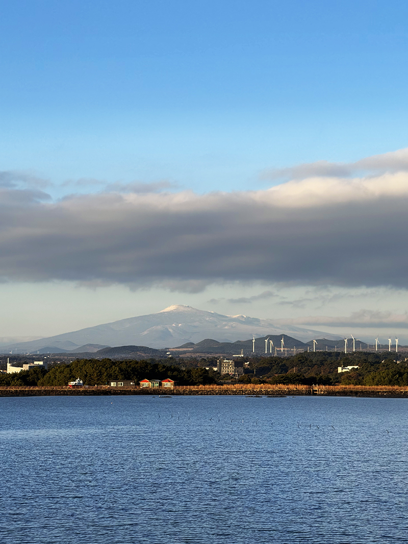 건너편으로 보이는 한라산 풍경이 아름다워서 가던 길을 멈추고 넋 놓고 바라보다가