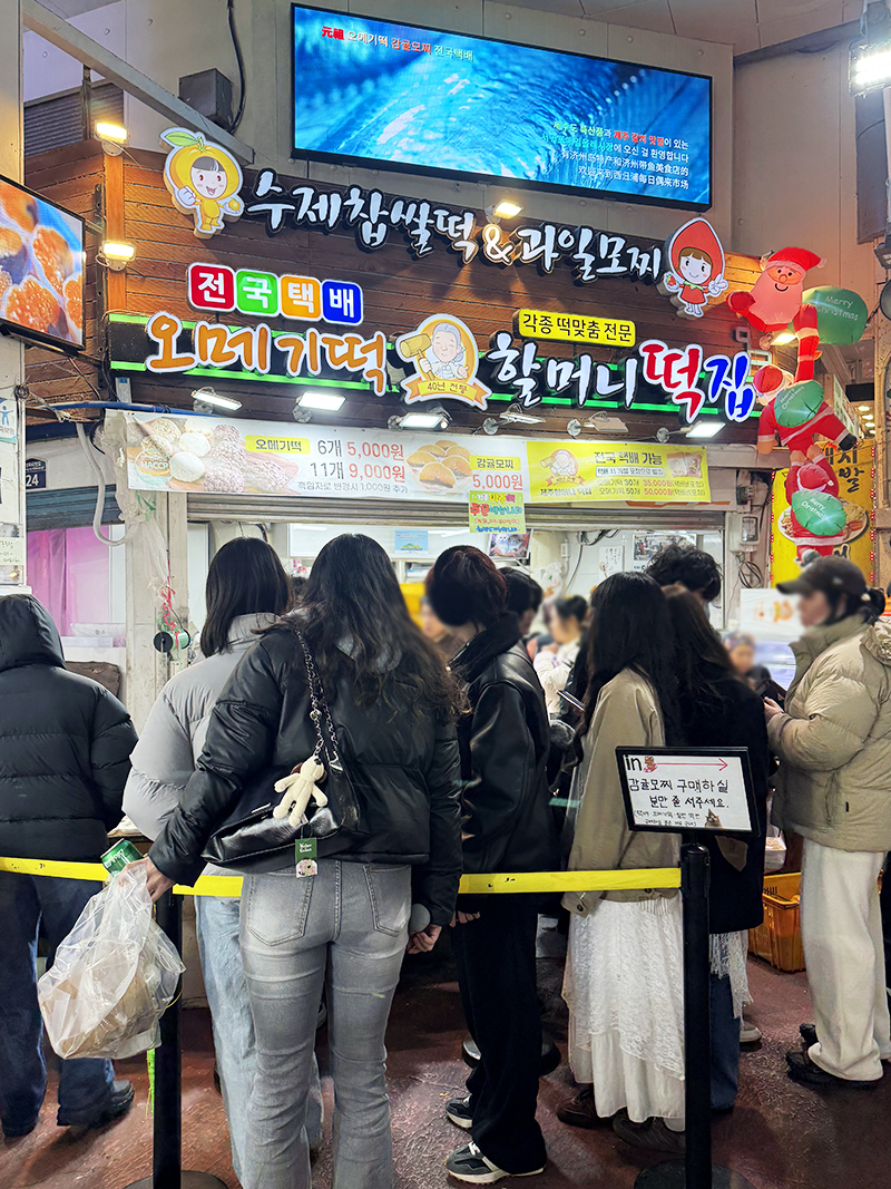결국 긴 대기줄이 있는 할머니떡집 앞에서 가던 길을 멈추고,
