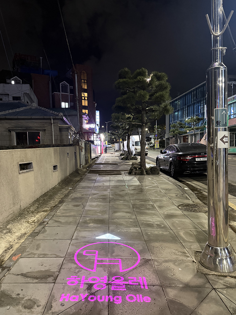 주변 야경을 보며 올레 표시등이 안내해 주는 길을 따라