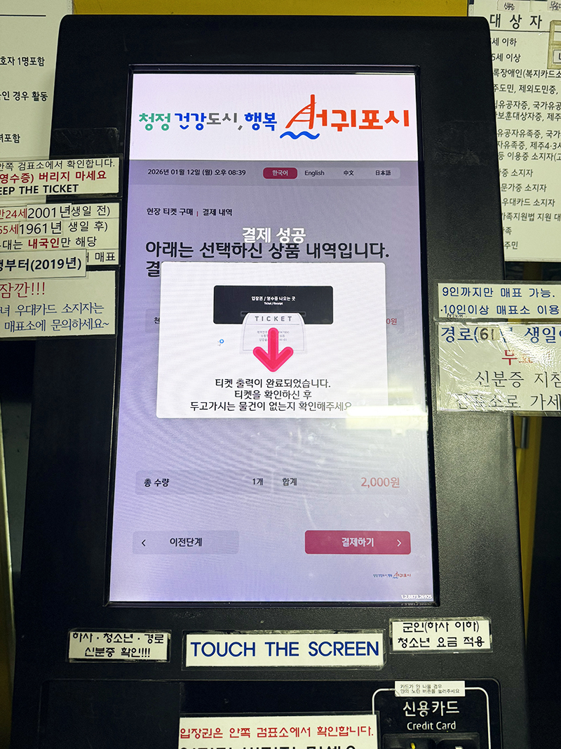 내내 긴장하면서 앞만 보고 걷다 보니 드디어 천지연 폭포 매표소에 도착했다! 휴~~~~