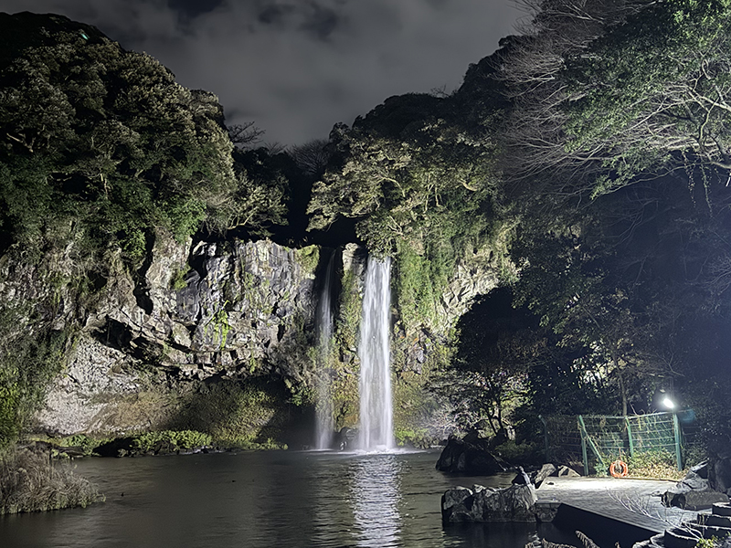 근처에 있는 '천지연 폭포(Cheonjiyeon Falls)' 야경이나 볼까 싶어 나섰다.