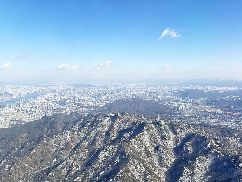 넋 놓고 풍경멍을 즐기고 있는 사이 어느새 서울 상공이 눈앞에 펼쳐졌는데,